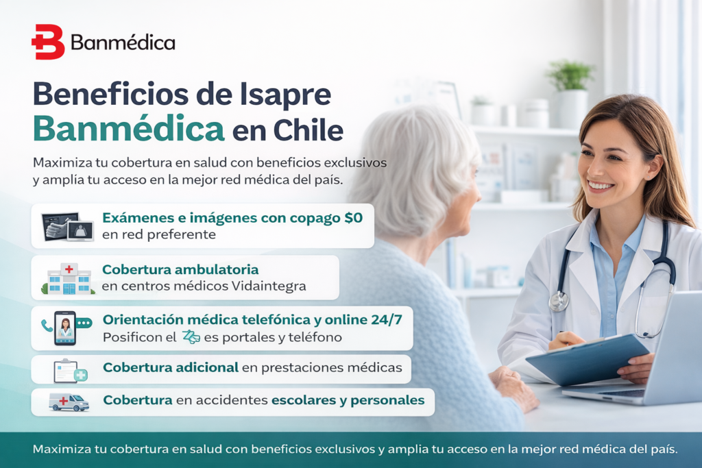 Isapre Banmédica Chile ofrece planes de salud con cobertura completa, ideales para quienes buscan seguridad, respaldo y acceso a una red médica de alto nivel. Sus opciones de seguro de salud privado incluyen beneficios en consultas médicas, exámenes, hospitalización y programas de salud preventiva.