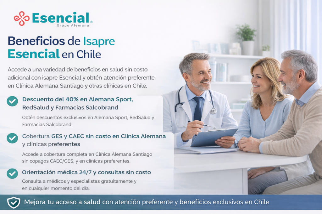 Isapre Esencial es una institución de salud previsional en Chile que ofrece planes de salud privados enfocados en la eficiencia, cobertura médica integral y acceso a una red de prestadores de calidad. Su propuesta está orientada a brindar soluciones simples y claras para quienes buscan seguro de salud en Chile.